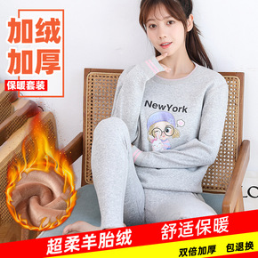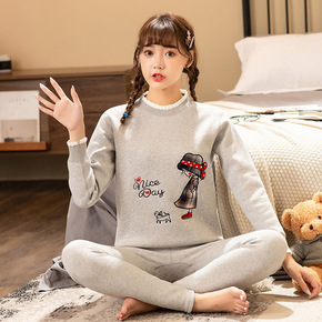 中大童保暖内衣女套装加绒加厚纯棉少女可爱秋衣秋裤女...