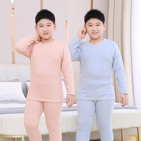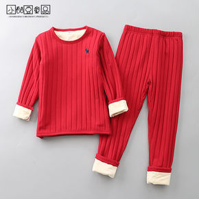 胖童保暖内衣套装舒绒棉男童秋衣秋裤女童无骨睡衣青少...