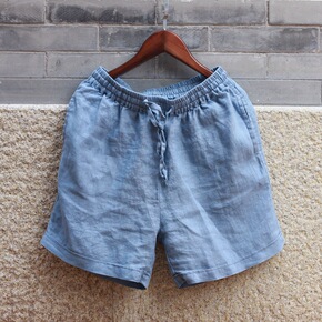 女式纯亚麻休闲五分裤/中裤 P9228情侣款女款...