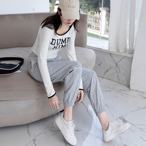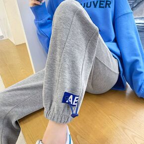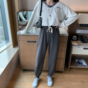 灰色运动裤子女休闲宽松高腰束脚新款韩版学生春秋百搭...