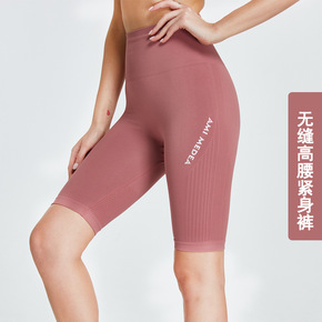 健身女孩显瘦高腰紧身裤速干裸感运动五分裤无缝蜜桃提...
