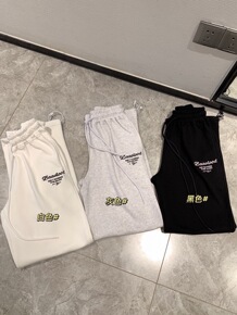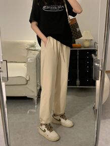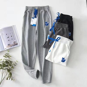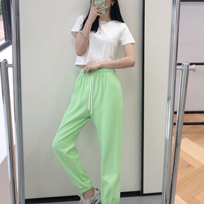 百搭街头运动风女式休闲长裤高腰直筒裤明星同款裤子宽...