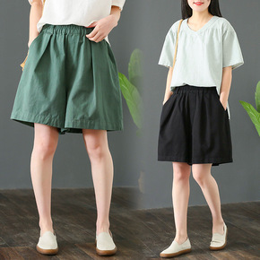 纯色棉麻松紧腰大码阔腿短裤女2022夏新款亚麻百搭...