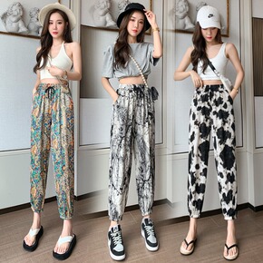 批发代理 大码印花棉松紧腰家居裤 女式睡裤夏宽松空...