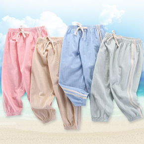 儿童防蚊裤男童女童运动裤春夏季薄款纯棉麻休闲男孩宝...