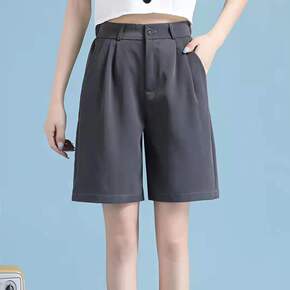 2021年夏季女式高腰西装短裤夏薄款宽松五分裤直筒...