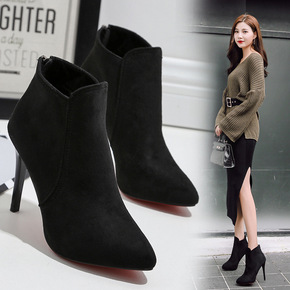 绒面商务靴大尺码33-48秋冬尖头中跟短靴时装女靴...