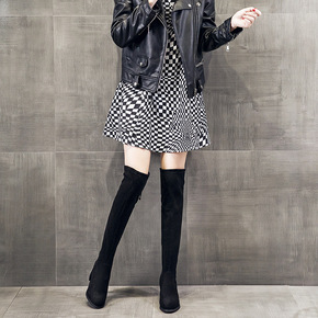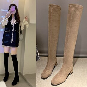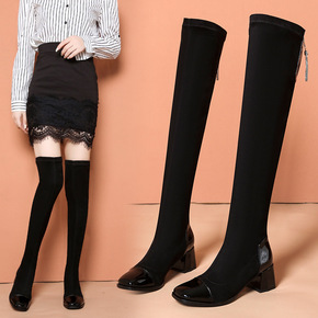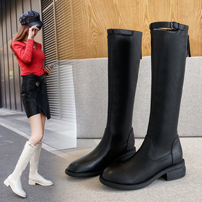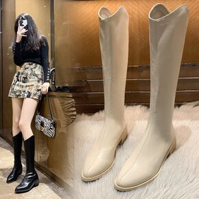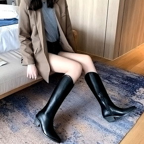 zijin家~侧拉链不过膝长筒靴女2021秋冬新款...