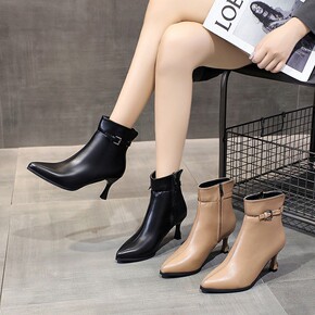 英伦风马丁靴女2021秋冬新款欧美大码尖头高跟中筒...