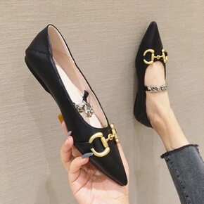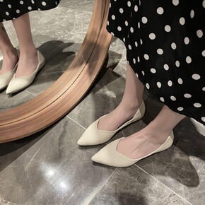 2022网红尖头金属马衔扣两穿踩脚浅口平底单鞋女鞋...