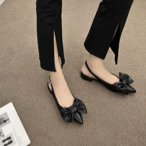 水钻蝴蝶结凉鞋2022新款透明水晶鞋包头细跟尖头鞋...
