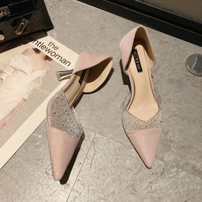 尖头水钻裸色凉鞋女2021夏新款细跟漆皮法式仙女风...