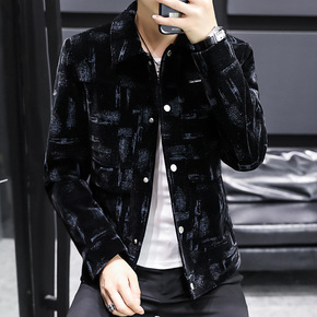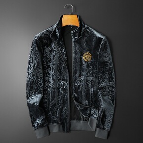 欧洲站 2021秋冬新款欧货金丝绒提花刺绣男士休闲...