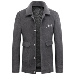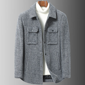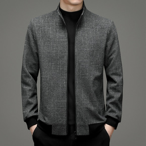 2021年秋季男士毛呢夹克中年休闲上衣男商务羊毛男...