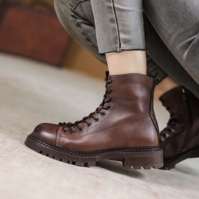 切尔西靴子男高帮2021新款英伦风工装靴男士牛皮机...