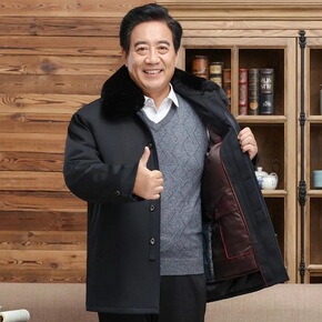 中老年棉衣男冬装外套加厚可拆卸内胆爸爸装中长款尼克...