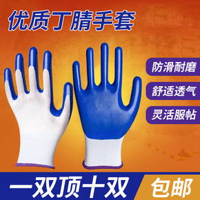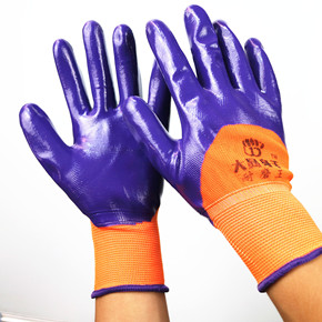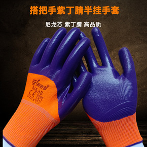 丁腈浸胶手套防水防滑加厚耐磨乳胶手套尼龙挂胶工地工...