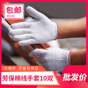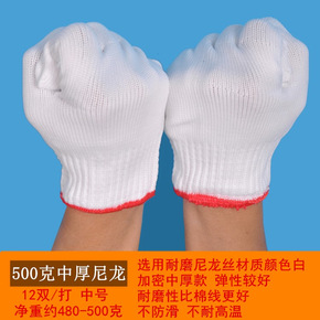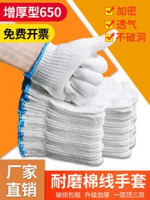 劳保线手套工作尼龙手套耐磨加厚棉线手套男工地劳动白...