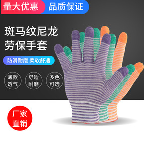 劳保用品工地【12双】夏季条纹薄款尼龙纱线透气工作...