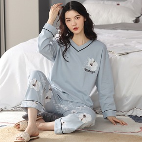 新款女士全棉睡衣长袖长裤套头套装春季秋季居家睡衣厂...