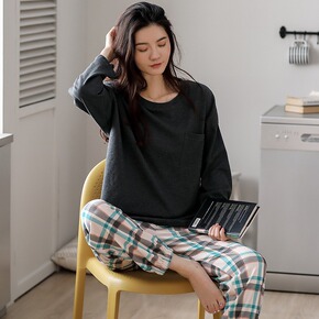 2022蔓秋新品女士格子居家睡衣长袖套装日系居家服...