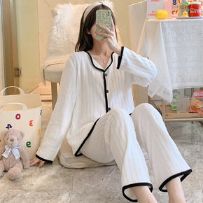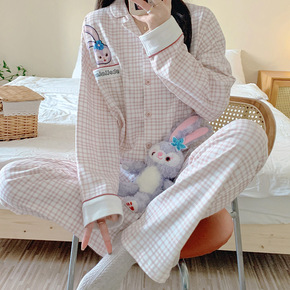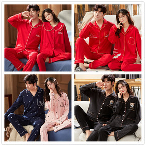 春秋季情侣睡衣女长袖男士套装韩版薄款可外穿新款休闲...
