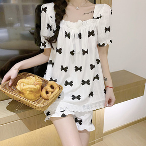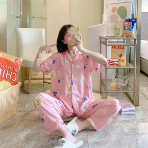 睡衣女士夏开衫翻领甜美网红爆款短袖个性少女家居服套...