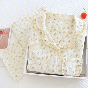 仙女风睡衣女春夏薄款纯棉宫廷公主风花边蕾丝皱布V领...
