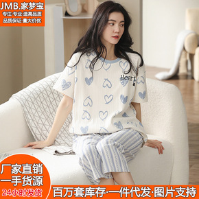 2022年夏季新款女士睡衣短袖七分裤简约休闲可外穿...