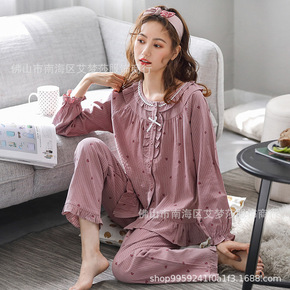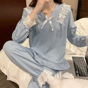 新款公主风睡衣女春秋长袖甜美可爱蕾丝花边春季家居服...