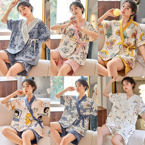 2022年新款睡衣女夏季纯棉短袖短裤家居服女甜美卡...