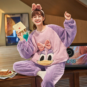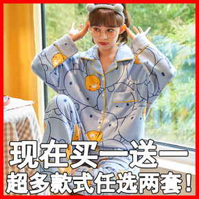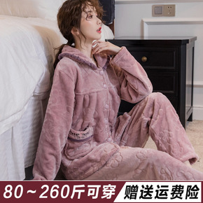 睡衣女士秋冬款冬天珊瑚绒加厚加绒保暖法兰绒家居服冬...