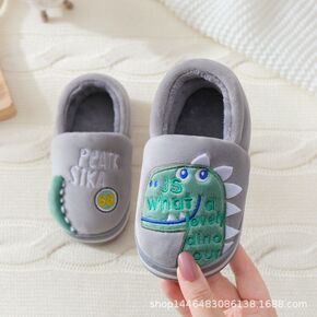 秋冬儿童棉拖鞋男童女童宝宝中小童保暖防滑包跟恐龙家...