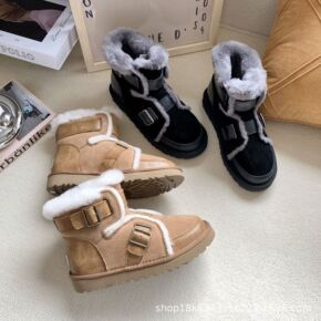 2022秋冬新款皮毛一体机车雪地靴女保暖短筒羊毛棉...