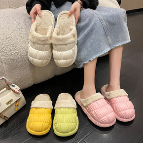 新款冬季包跟棉拖鞋女家用室内保暖毛绒加厚棉鞋防水耐...