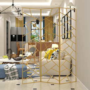 北欧金色铁艺屏风餐厅饭店铁艺折扇隔断座屏卧室试衣间...