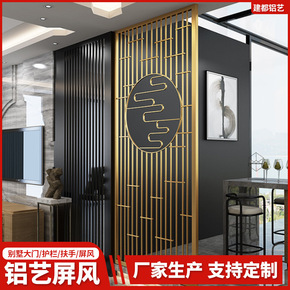 不锈钢屏风隔断 钛金镂空雕花竖条花格隔断金属中式客...