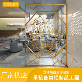 北欧铁艺 不锈钢镂空钛金入户隔断墙定制 办公室折叠...