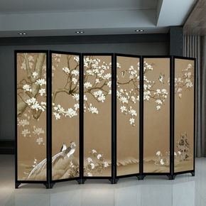 北欧中式山水屏风隔断客厅卧室移动折叠餐厅办公室遮挡...