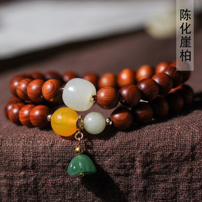 相思蝶佛珠108颗纯木檀香木好运珠文玩绿檀紫檀汽车...