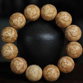 批发 崖柏木全雕刻珠义薄云天款手串 2.0×12颗...