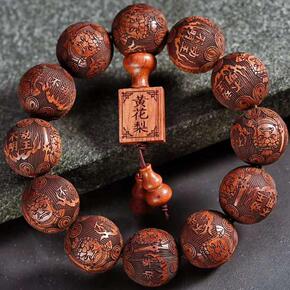 黄花梨木刻佛珠手串男紫檀木珠文玩沉香貔貅情侣念珠1...