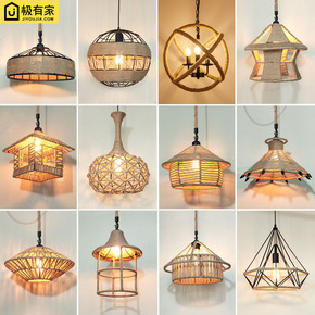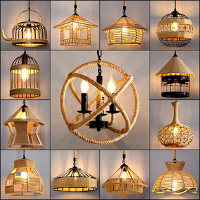麻绳吊灯工业风复古灯餐厅吧台咖啡厅奶茶服装店农家乐...