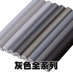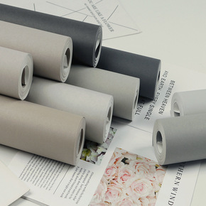 现代简约北欧纯素色无纺蚕丝墙纸浅水泥灰色系深灰客厅...