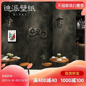 复古工业风水泥灰斑驳墙纸素色咖啡厅服装店女装深灰高...