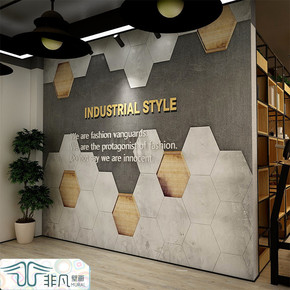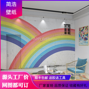 3d工业风服装店彩虹墙纸健身房打卡拍照背景墙网红餐...