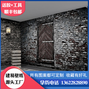 复古工业风密室逃脱剧本杀墙纸阴森鬼屋恐怖黑白斑驳水...