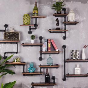 工业风墙上置物架水管壁挂一字隔板墙壁墙面客厅铁艺实...