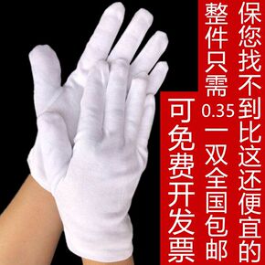 白手套纯棉礼仪薄款文玩盘珠布工作男女干活劳保耐磨开...
