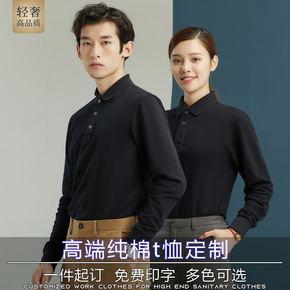 高端长袖polo衫t恤工作服印字纯色全棉广告衫工装...